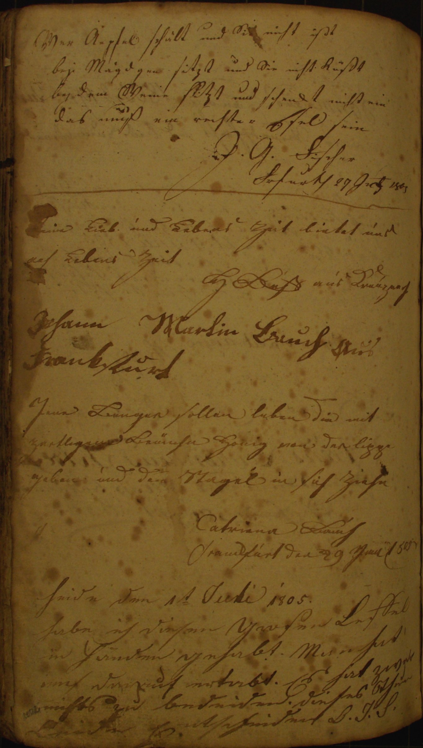 und den Stagel in sich ziehn Catriena Bauch Franckfurt den 29 Juni 1805
