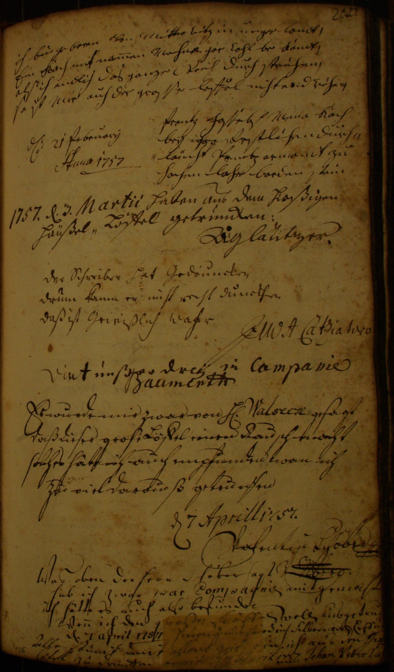 Was oben der herr Schöber sagt hab ich zuvor par Compagnia mit gemacht ich hätte es auch also befunden Wenn ich den großen löffel voll ausgetruncken d. 7 april 1757