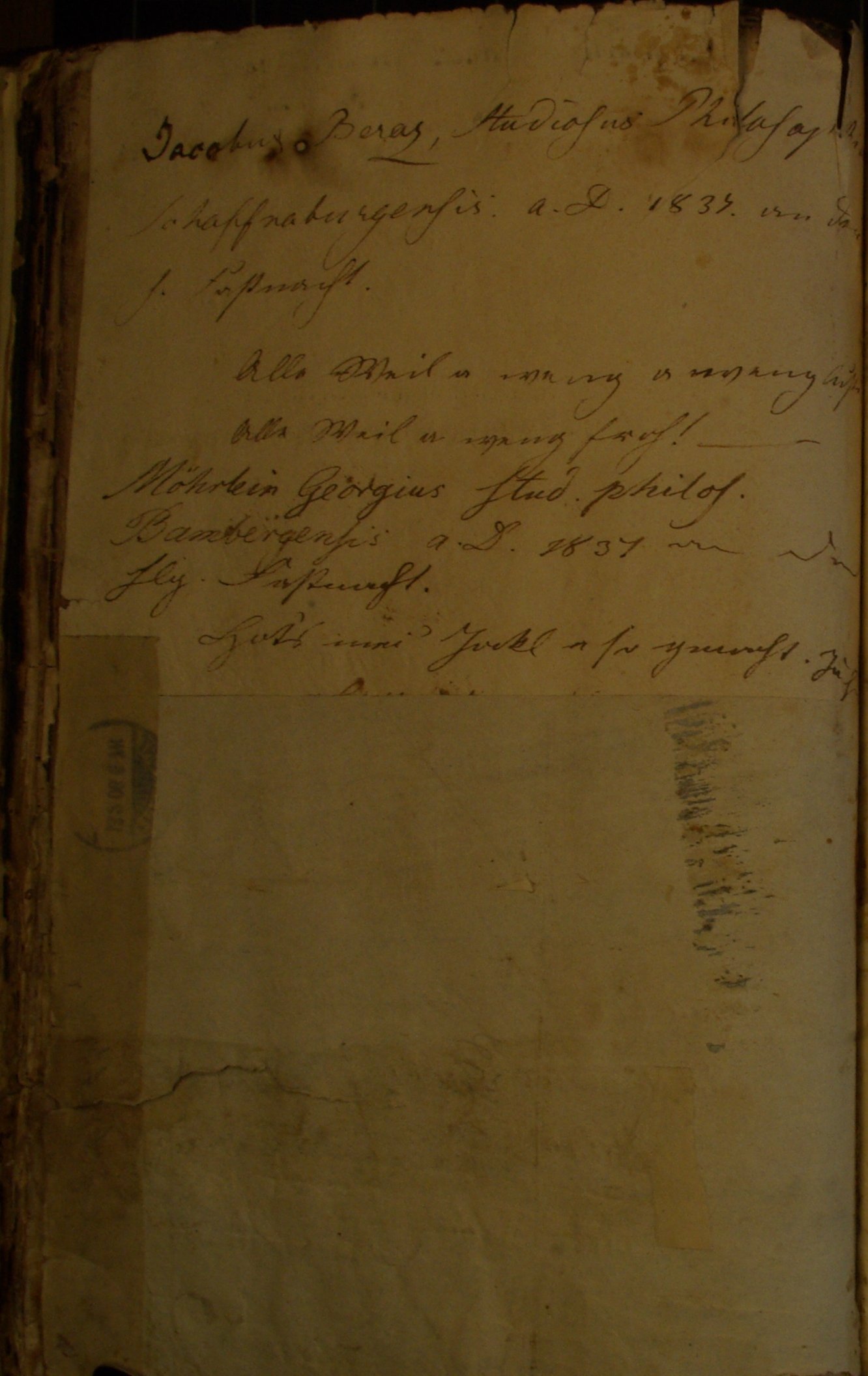 Möhrlein Georgius, Stud. Philos. Bambergensis. a. D. 1837 an der hlg. Fastnacht.