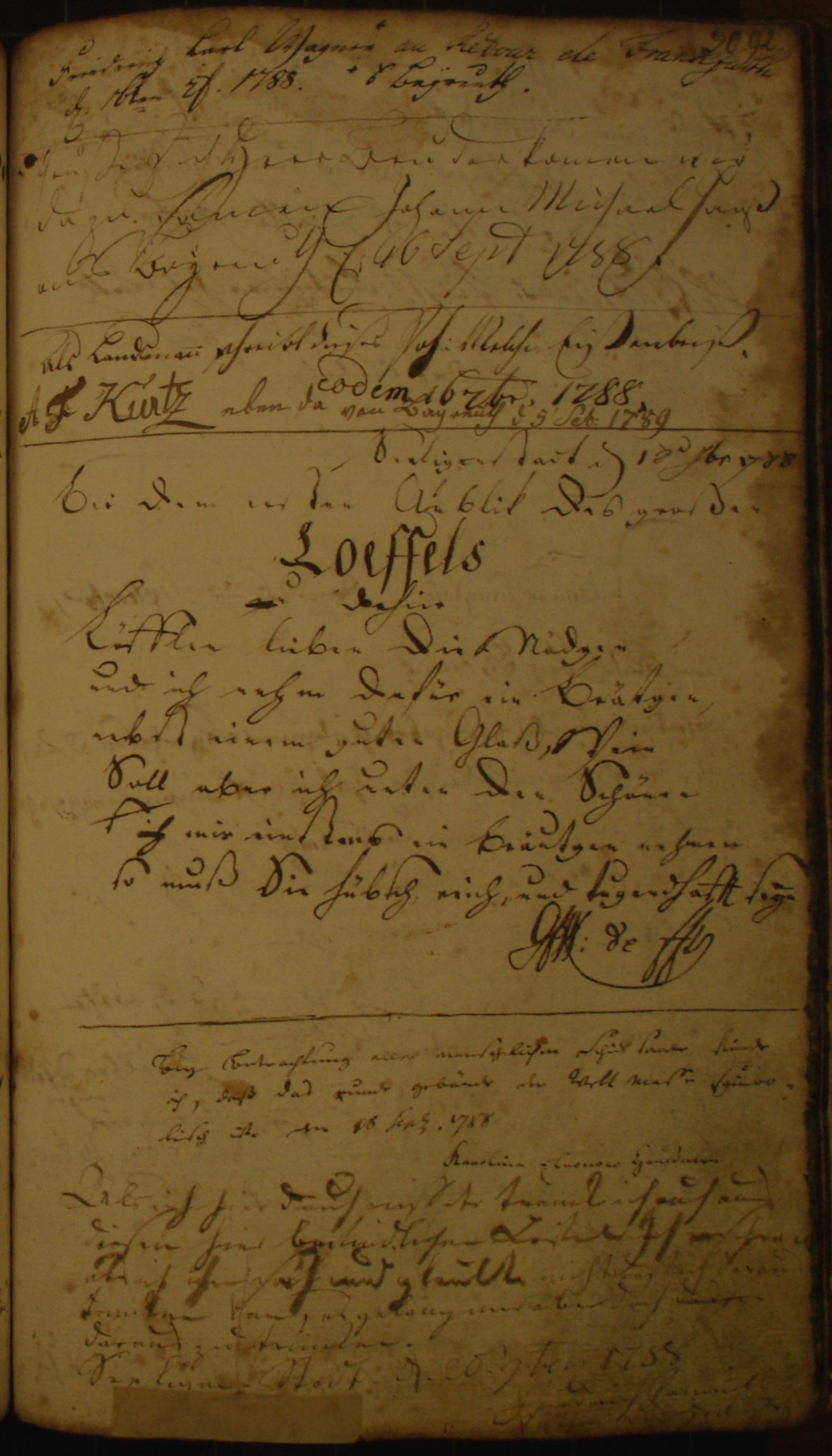 Seligenstadt den 18 7br 1788 bei dem ersten Anblik des großen Loeffels dahier