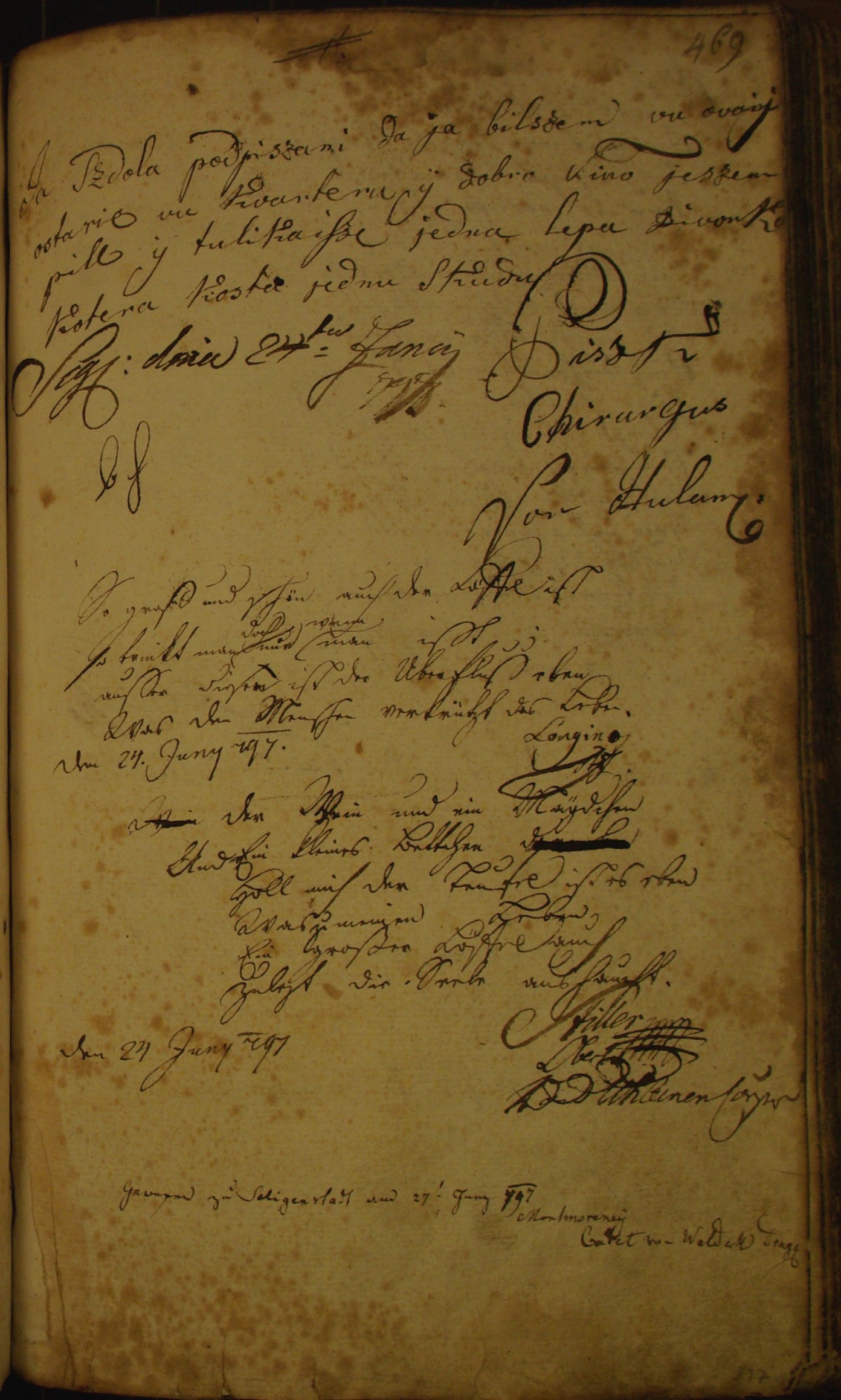 Sig: den 24ten Jany 797 Pistor Chirurgus Von Hulany