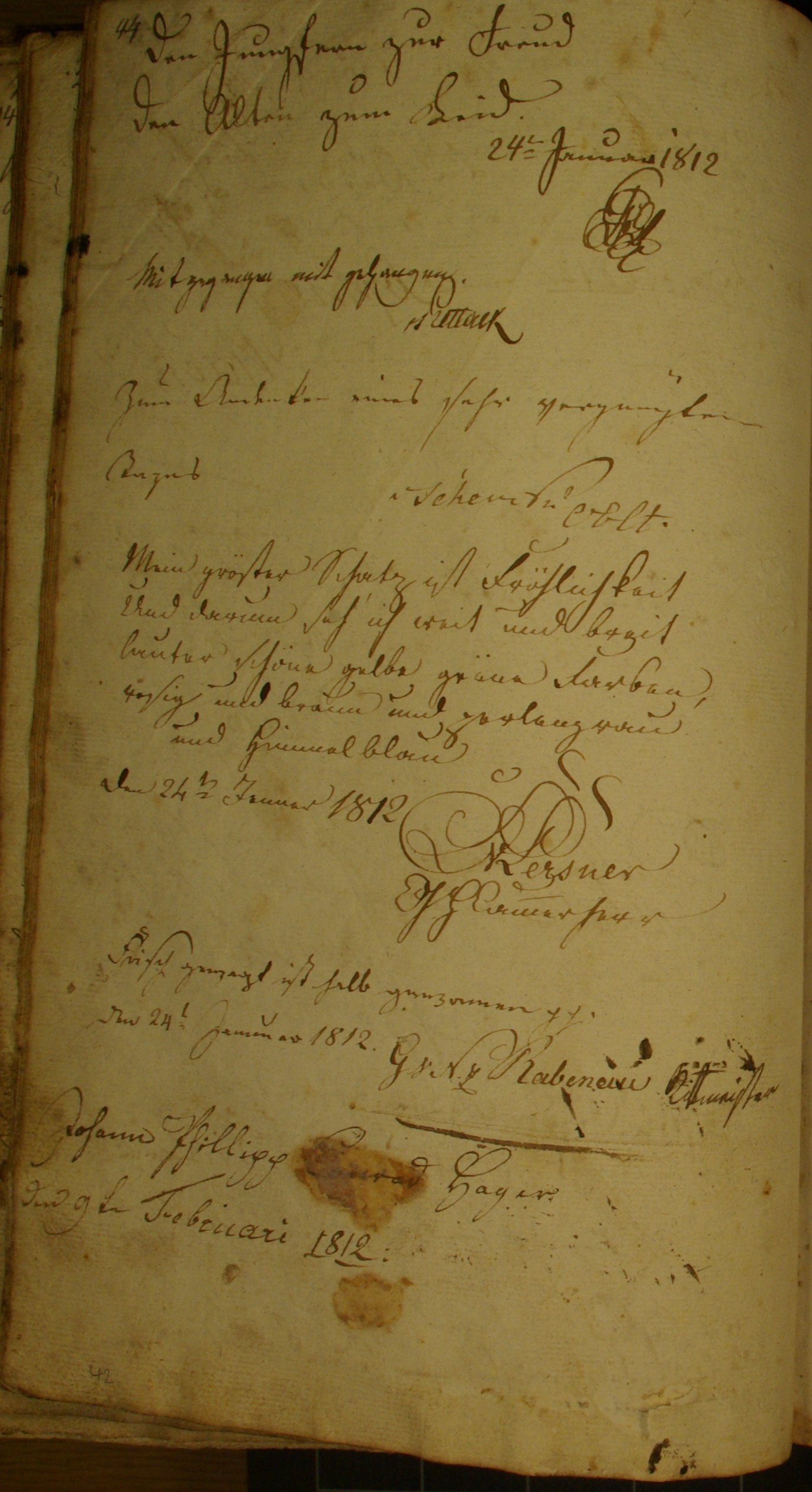 den 24. Januar 1812 G.vN.z Rabenau Rittmeister