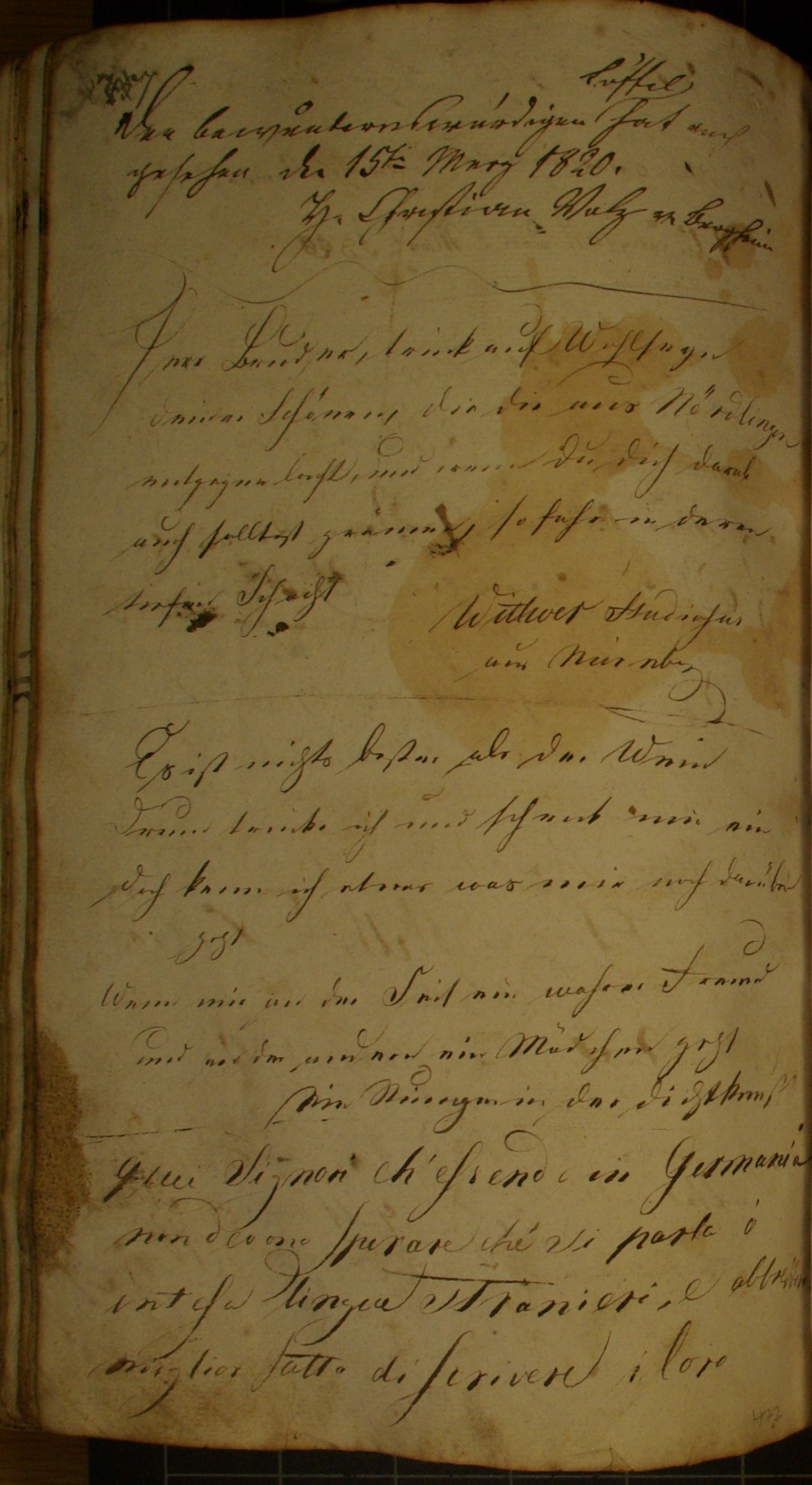 den 15tn Merz 1820 H Christian Wolz v. Bergheim