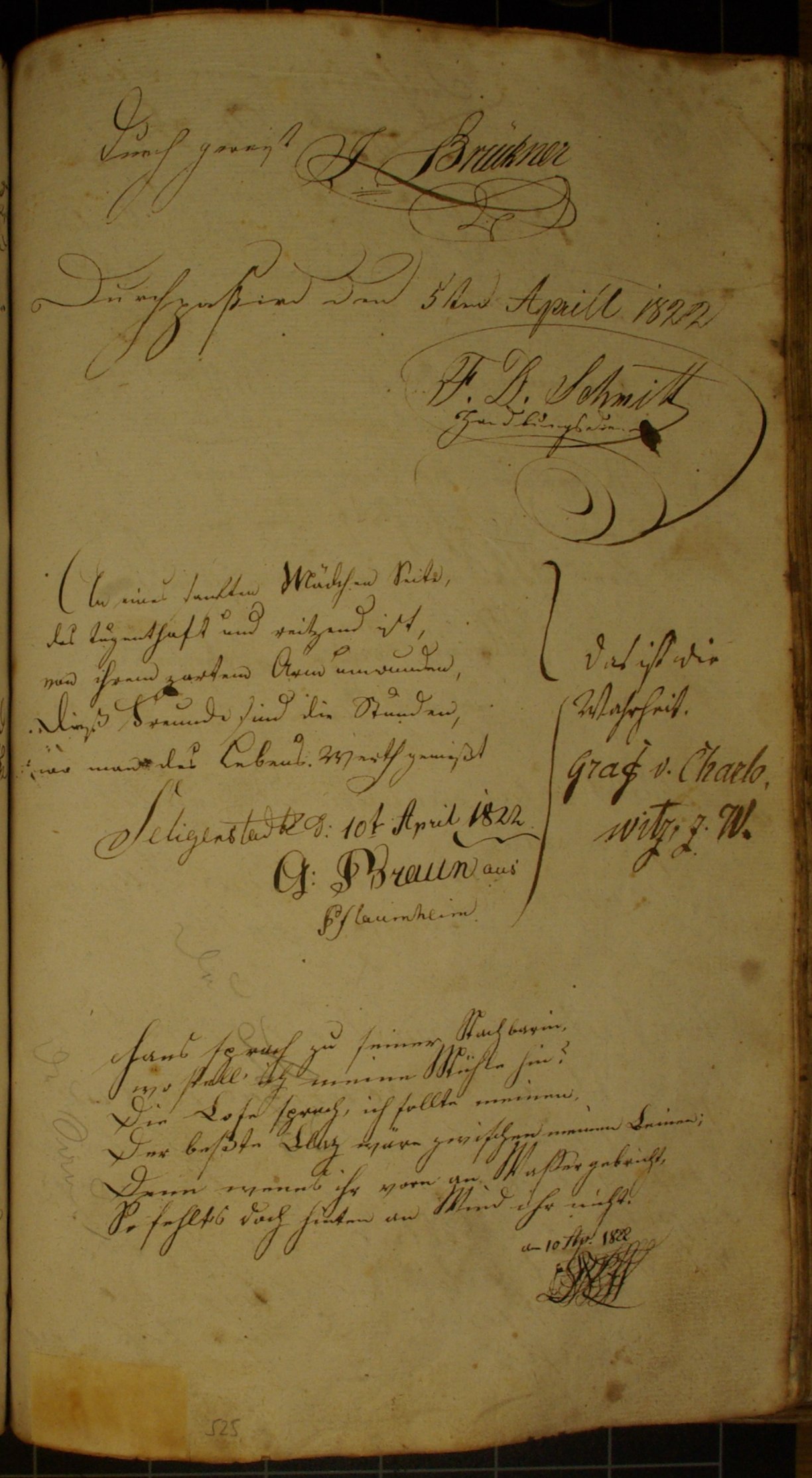 Selgenstadt d: 10t April 1822 G: Braun aus Pflaumheim