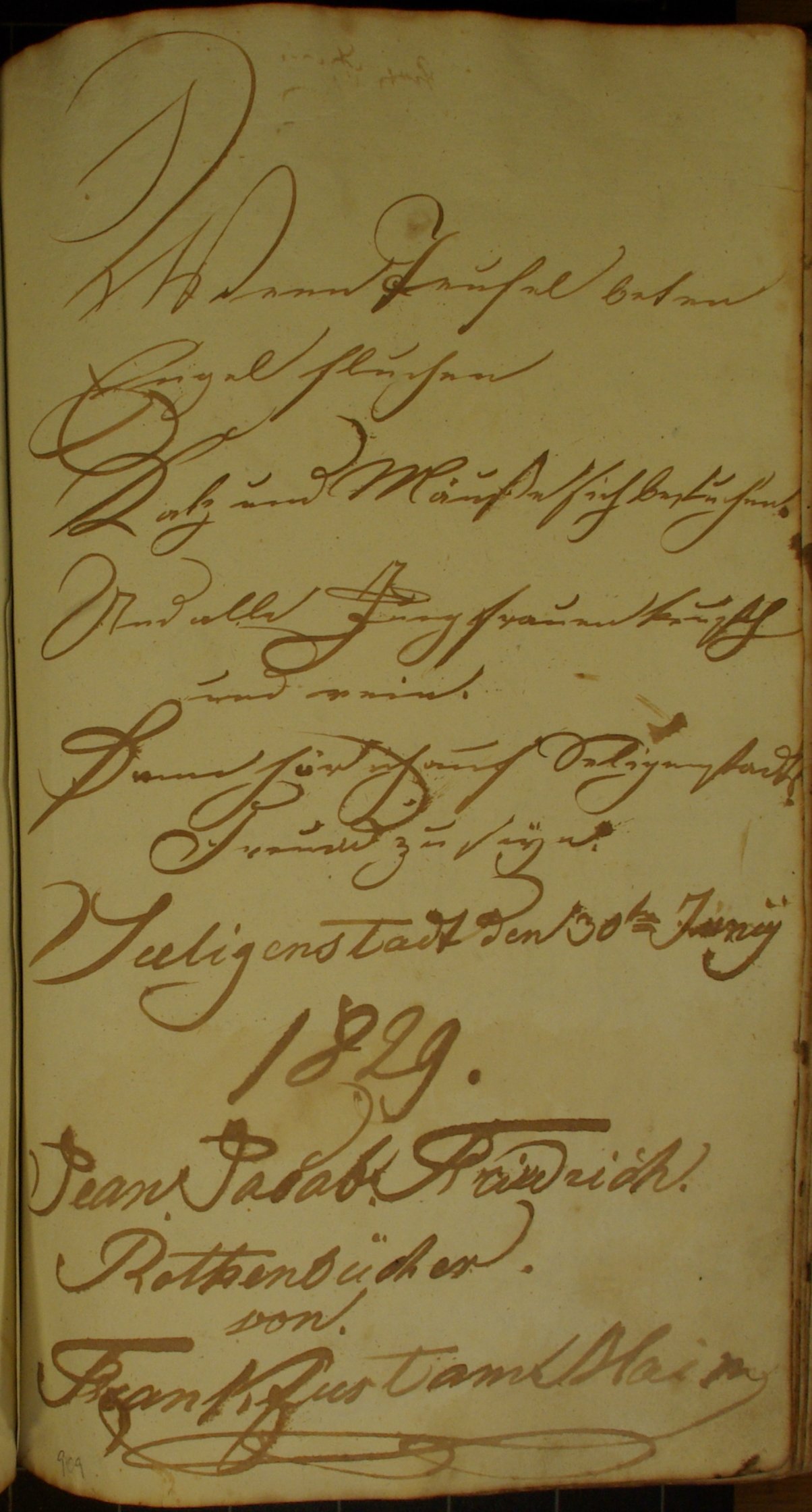 Seeligenstadt den 30tn Juny 1829 Jean Jacob Friedrich Rothenbücher von Frankfurt am Main