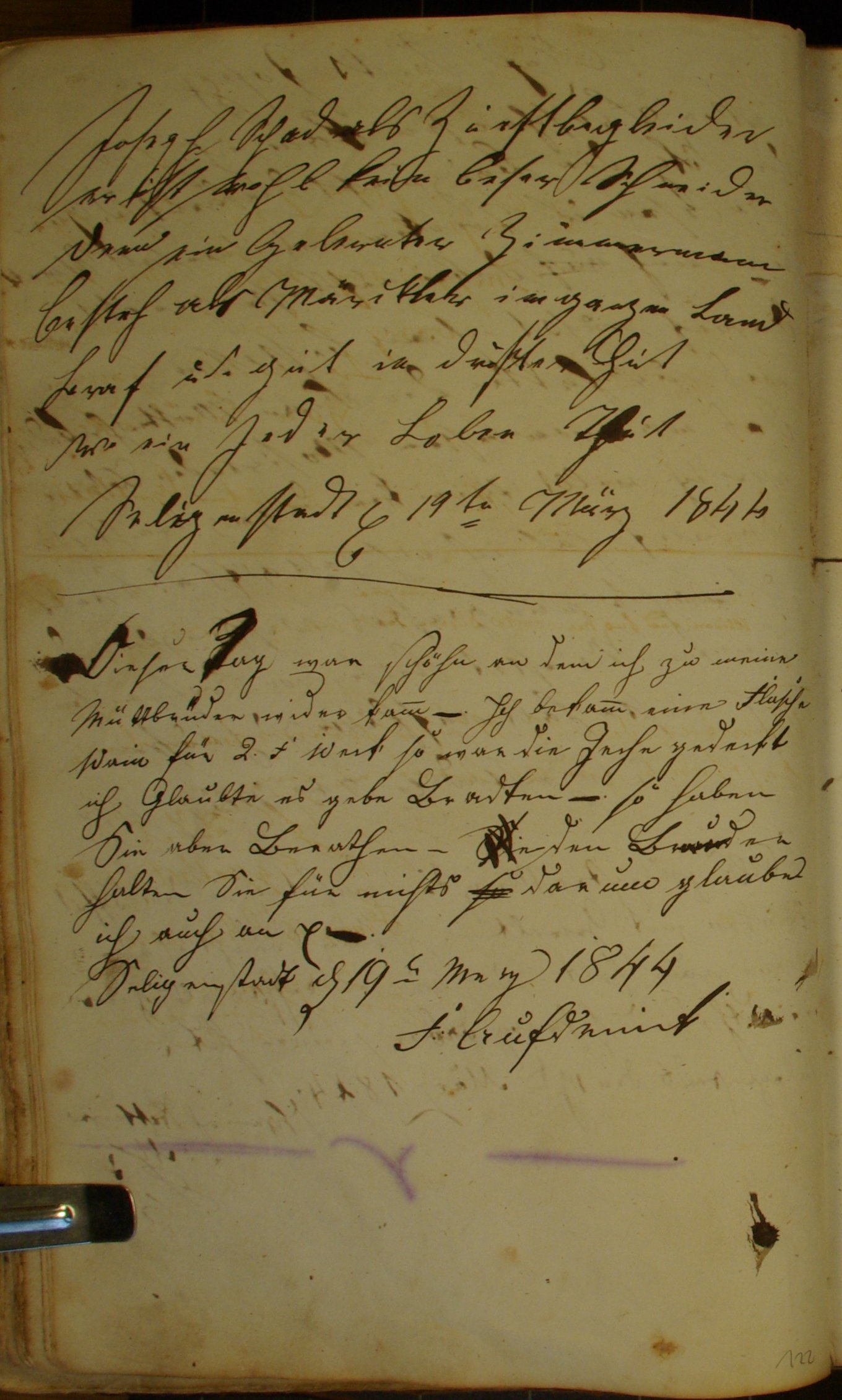 Seligenstadt den 19tn Merz 1844 F: Aufdrimt