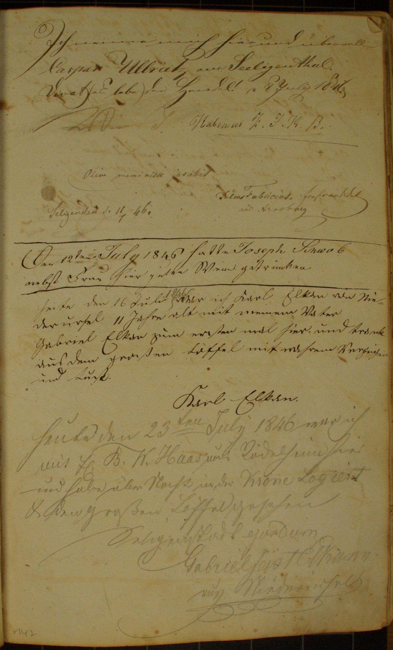 Den 12ten July 1846 hatte Joseph Schwab nebst Frau hier guten Wein getrunken