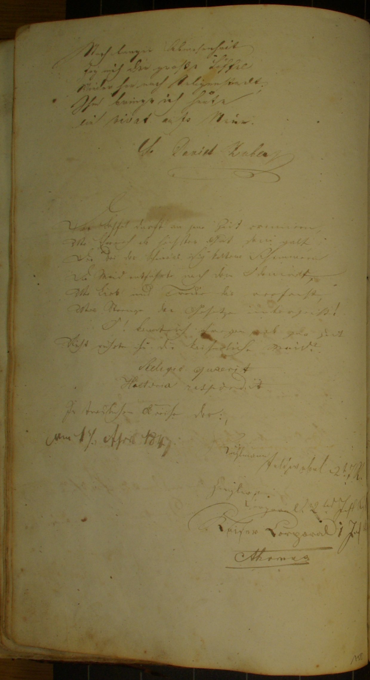 Nach langer Abwesenheit Zog mich der große Löffel Wieder her nach Seligenstadt; Ihm bringe ich heute ein Vivat aufs Neue S. David Zuber