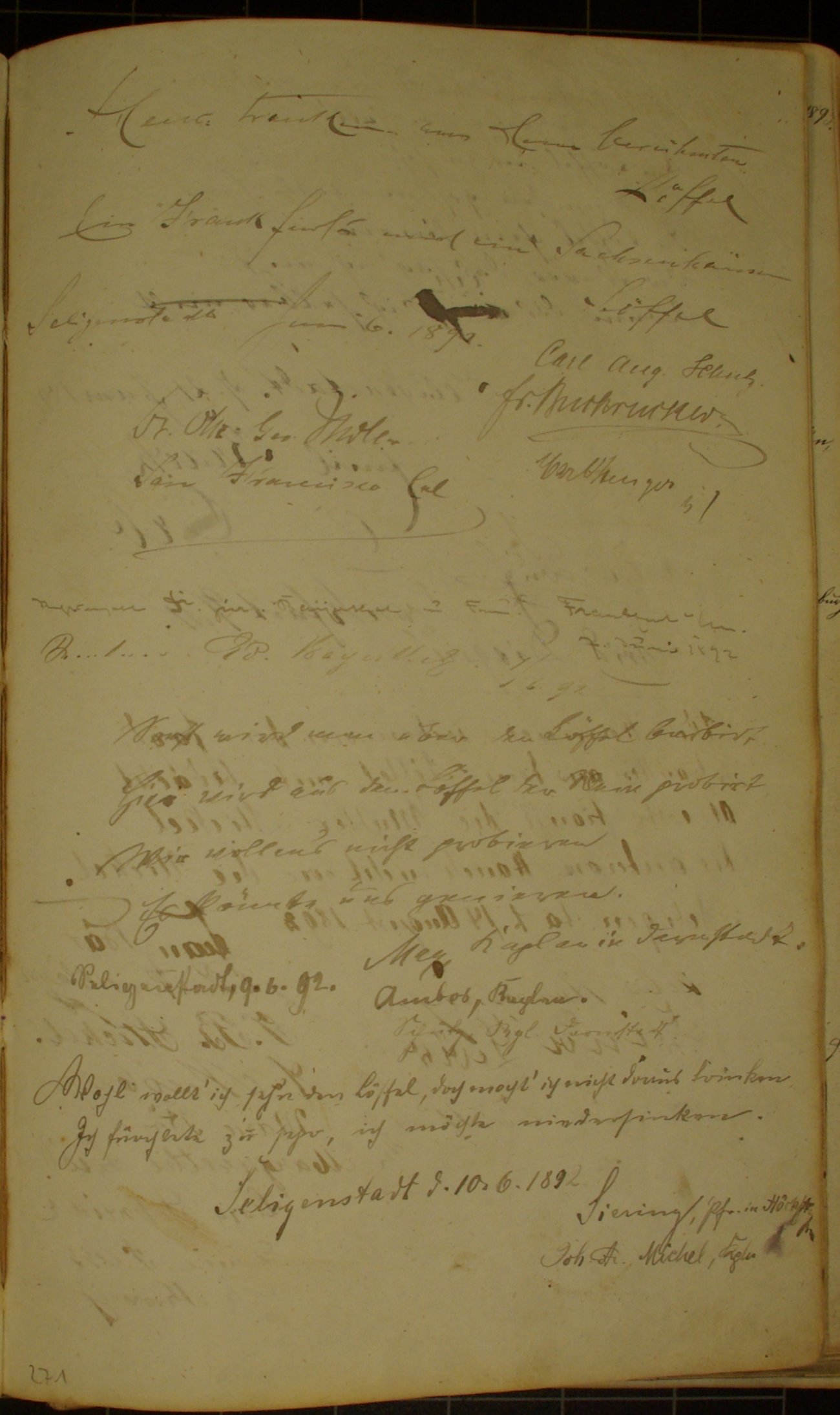 Seligenstadt d. 10.6.1892 Siering, Pfr. in Höchst a/m Joh. A. Michel, Kpln