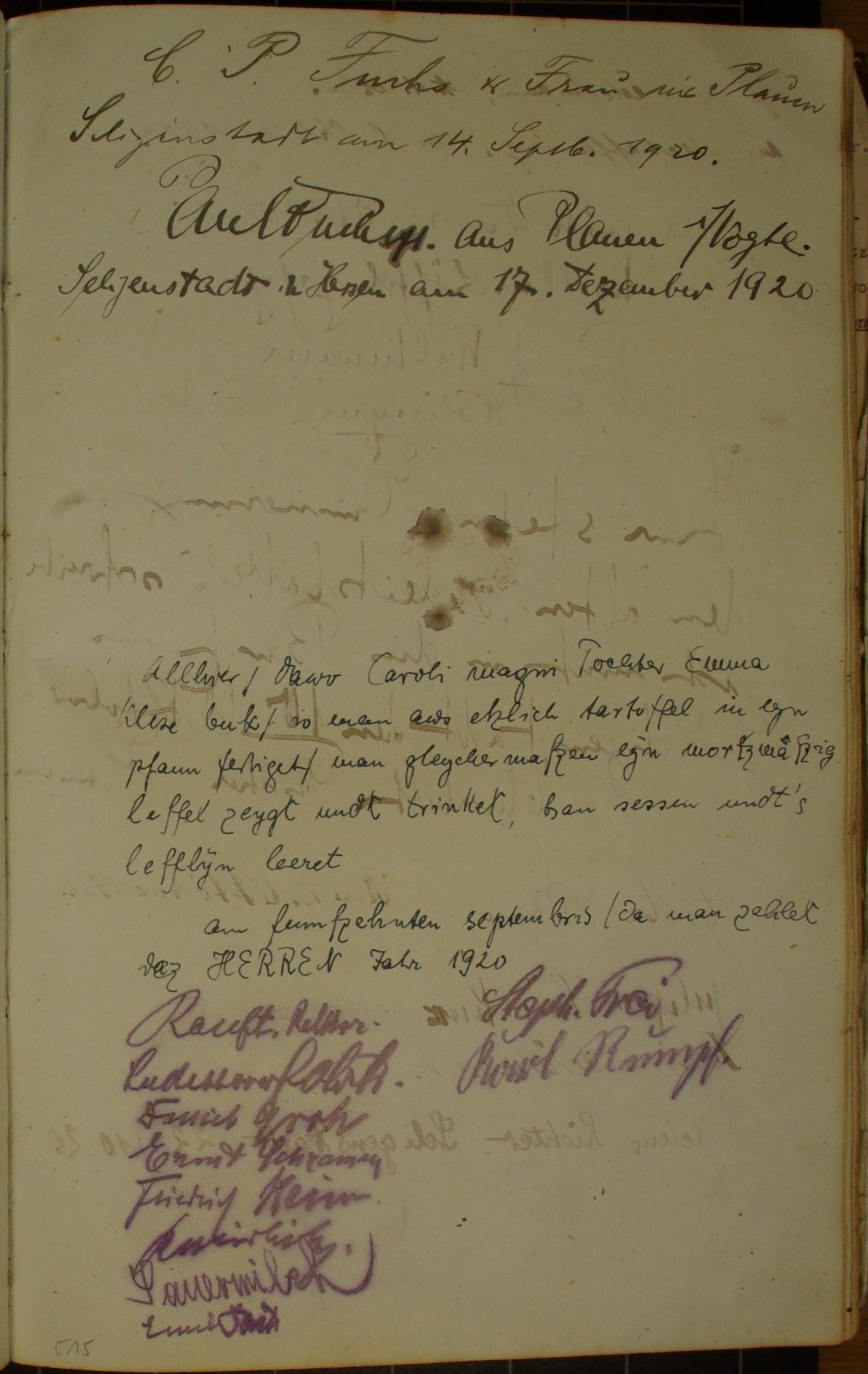 C. P. Fuchs & Frau aus Plauen Seligenstadt am 14. Septb. 1920
