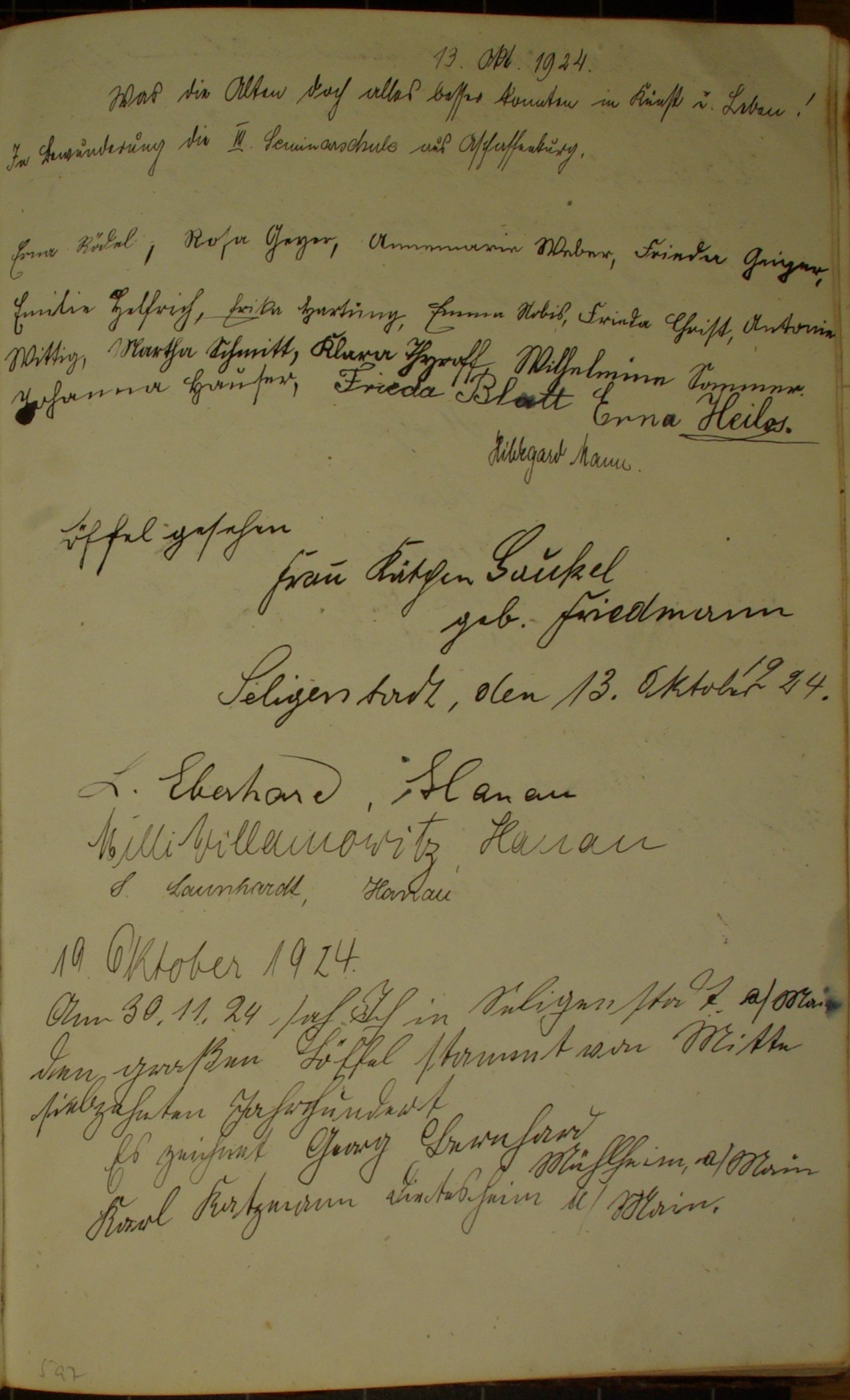 Löffel gesehen Frau Kätchen Gaukel geb. Friedmann. Seligenstadt, den 13. Oktober 24
