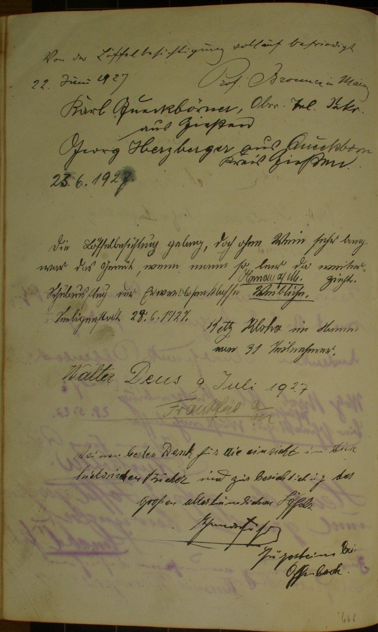 Von der Löffelbesichtigung vollaf befriedigt. 22. Juni 1927 Prof. Bronner in Mainz